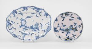 4302. Plat chantourné et assiette, Delft et France, XVIIIe s