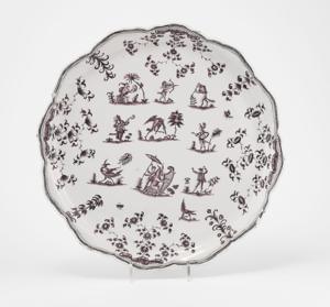 4308. Plat chantourné à décor de grottesques, Moustiers, XVIIIe s
