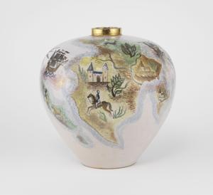 Vase, céramique émaillée polychrome à décor d'une carte du monde...