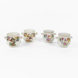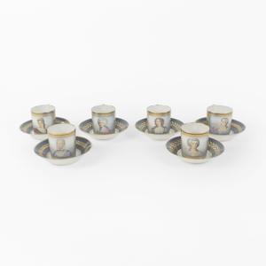 4345. Suite de 6 tasses à décor de femmes de la cour de Fance dans des...