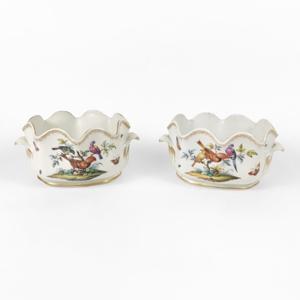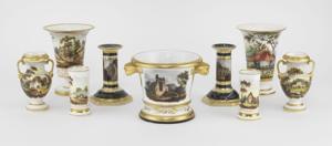Comprenant: seau, paire de bougeoirs, paire de vases cornet, pai...