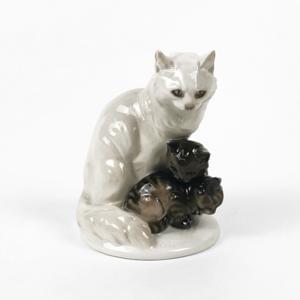 Les chats, porcelaine émaillée polychrome, signée, H 13 cm