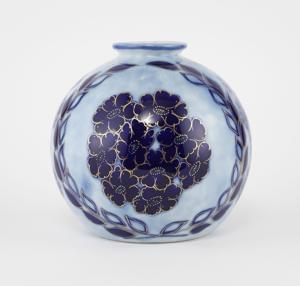 Vase boule, céramique émaillée bleu et doré à décor de fleurs, H...
