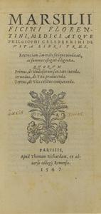 4385. FICIN (Marsile) : Marilii Ficini Florentini Medici atque Pholoso...