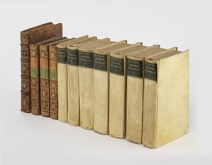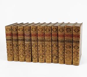 11 volumes in 4°, basane fauve jaspée, dos à nerfs ornés, tranch...
