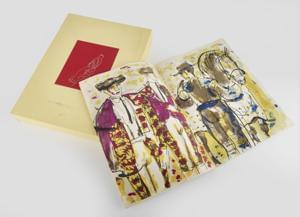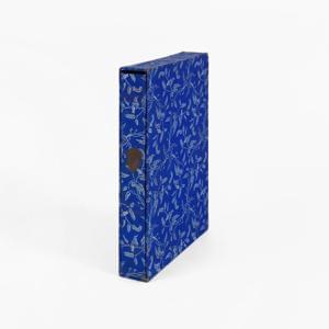 In folio en feuilles sous chemise illustrée et coffret gainé ble...