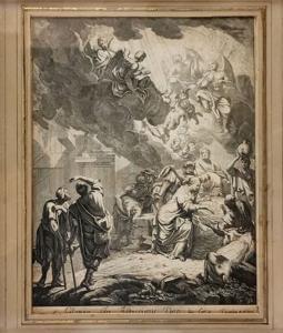 Le baptême du Christ, gravure, 41x33 cm. Cadre XVIIIe s en marqu...