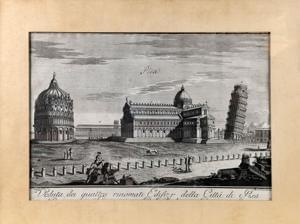Vue des quatre bâtiments renommés de la ville de Pise, gravure,...