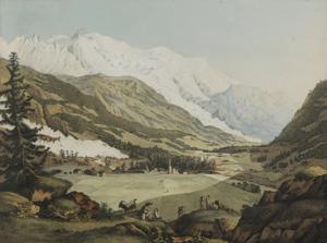 Vue de la Vallée de Chamonix prise près d'Argentière, gravure re...
