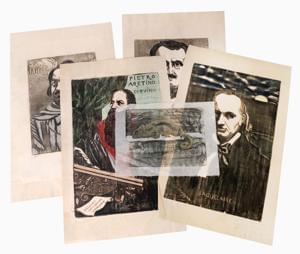 Six bois gravés et colorisés par Max Olderock (1895-1972), desig...