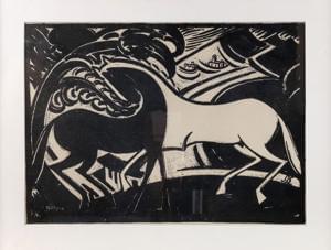 Chevaux, bois gravé, monogrammé dans la planche, signé et daté 1...