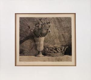 Nature morte au panier, eau-forte, numérotée 10/55, signée, 22x2...