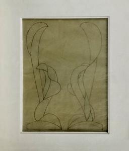 Motif floral stylisé, crayon sur papier calque, 26x21 cm. Proven...