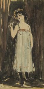 Portrait de femme, aquarelle et gouache sur papier, monogramme i...