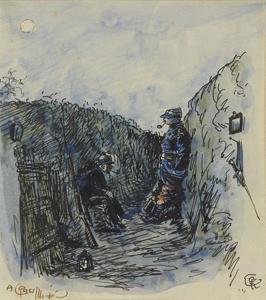 Le matin dans les tranchées, aquarelle sur papier, monogrammée e...