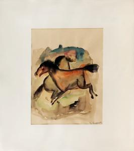 Chevaux, aquarelle sur papier, signée, 25x19 cm