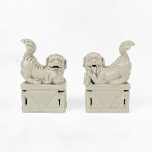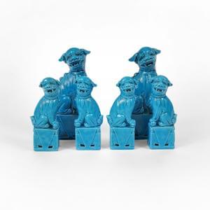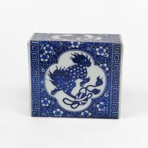 Porcelaine émaillée bleu blanc à décor imprimé de shishi, H 14 c...