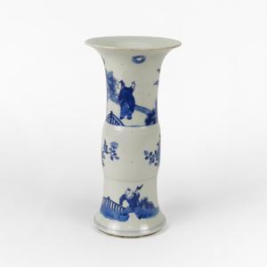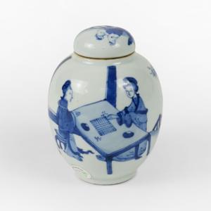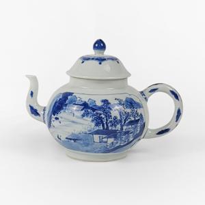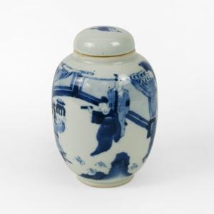 Porcelaine bleu blanc à décor d'un paysage animé, H 17 cm