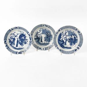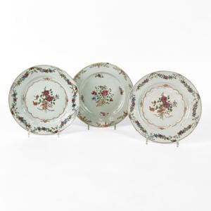 4891. Suite de trois assiettes, Chine, Compagnie des Indes, XVIIIe s