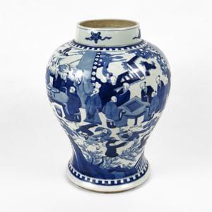 Porcelaine bleu blanc à décor d'un paysage animé, H 22 cm