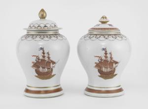 4886. Deux potiches couvertes, Chine, Compagnie des Indes, XVIIIe s