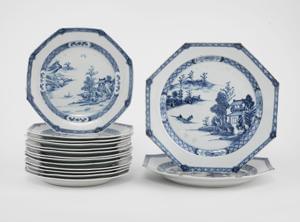 4903. Suite de 12 assiettes et 2 plats octogonaux, Chine, Compagnie de...