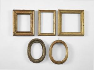 Trois rectangulaires et deux ovales, bois sculpté et doré, à la...