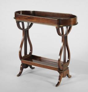 Acajou et filets de laiton, pieds lyre, 78x80x34 cm