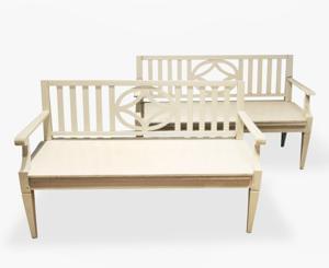 Métal peint blanc, comprenant: paire de fauteuils, paire de chai...