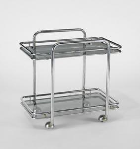 Deux plateaux, verre fumé et métal chromé, 73x78x53 cm