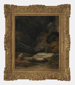 Saint Jérôme agenouillé devant la Croix, huile sur toile, porte...