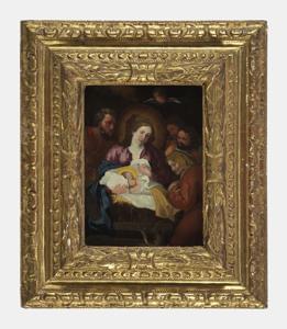 L'adoration des bergers, huile sur toile, 28x21 cm. Cadre en boi...