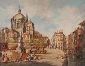 Place vénitienne dans le goût du XVIIIe s, huile sur toile marou...