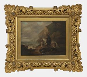 Cavalier et poissonnière sur la plage, huile sur toile, datée 18...