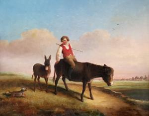 Paysan avec ânes, huile sur toile, 36x46 cm
