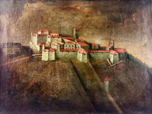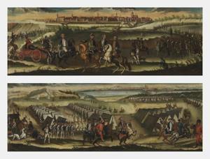 Siège d'une ville, paire d'huiles sur toile, 35x100 cm