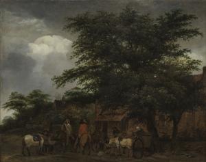 La pause des voyageurs, huile sur toile, 67x84 cm