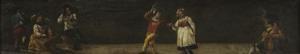 Musiciens et danseurs, huile sur panneau, 17x96 cm