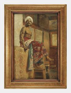 Jeune homme assis au turban, huile sur toile, signée et datée [1...