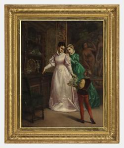 Le baiser au public, huile sur carton, monogrammée et datée 1903...