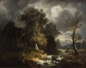 Remise de chevreuils au ruisseau de Plaisir-Fontaine, huile sur...