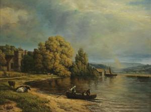 Départ de la berge, huile sur panneau, signée Rose, 30x40,5 cm