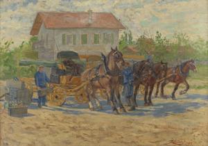 La caravane, huile sur carton, monogrammée M.B, 22x30 cm