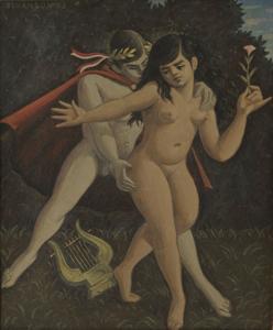 Apollon et Daphné, huile sur carton, signée et datée 53, 46x38 c...