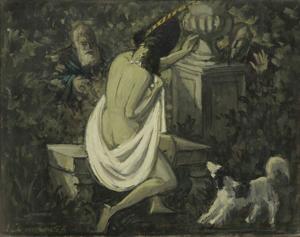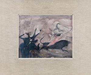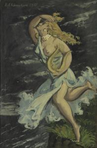 La mort de Sapho, huile sur carton, signée et datée 1951, 42x28...