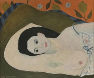 Femme couchée, huile sur isorel, signée et datée 55 46x55 cm