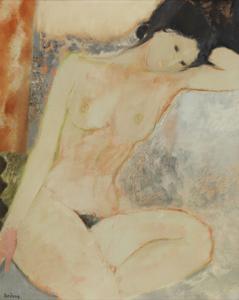 Nu assis, huile sur isorel, signée et datée 59, 63x47 cm