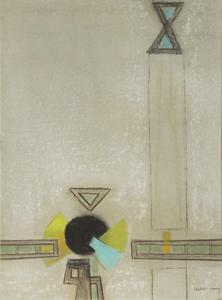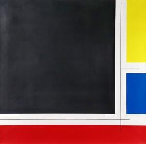Abstraction géométrique, huile sur pavatex, 63x90 cm