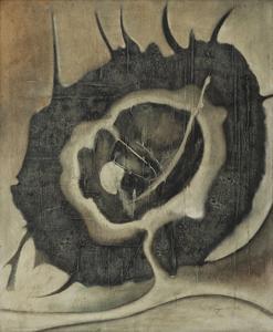 Abstraction, huile sur pavatex, signée et datée 63, 65x81 cm