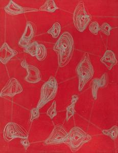 Abstraction en rouge et noir, technnique mixte sur pavatex, sign...